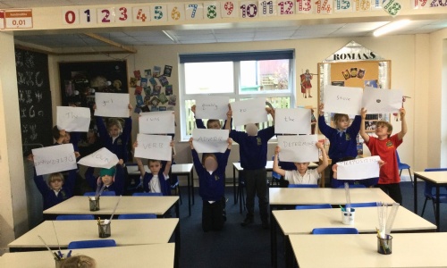 Otters have done very well this week keeping focused on their learning while there are so many exciting events and activities going on! We have been lucky enough to go and see the Ladybirds Christmas performance at the church on Wednesday. We have of course been busy preparing for our own Christmas performance and Thursday was completely taken up with this. We have managed to keep working hard in between all of this, with a special push this week on our grammar knowledge. To help the children learn the different word classes (noun, verb, adjective, adverb, preposition and determiner) we made "human sentences". Each child was a word or a word class and we all had fun making a whole sentence and matching the different words with their classes.